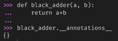 If a return type is provided to a function, even that gets added to its corresponding __annotations__ dictionary.