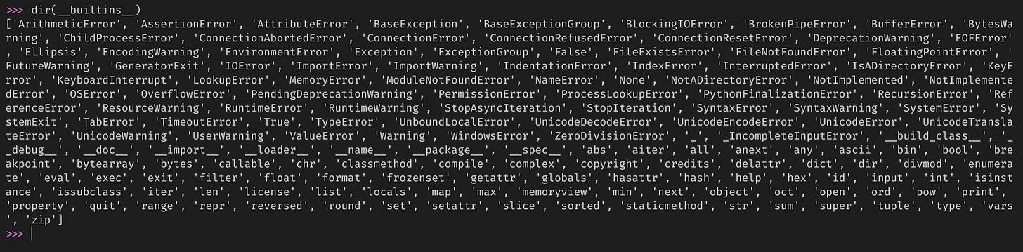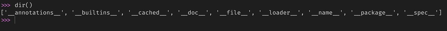 When you have no packages or libraries imported, by default, the “dunder” or “double under” names that Python injects, show up.
